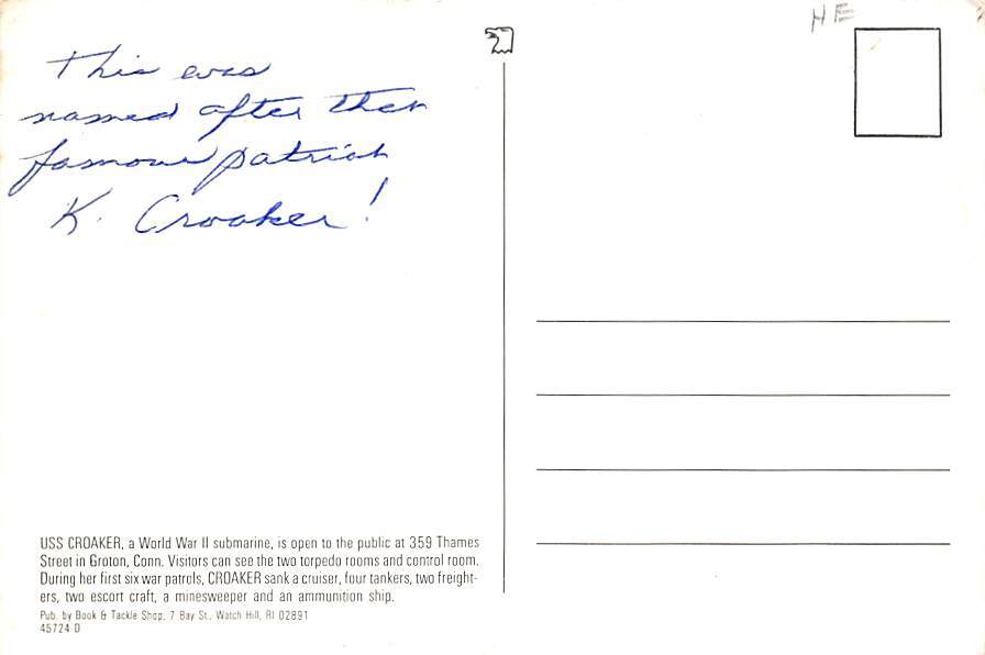 USS Croaker Groton, Connecticut, USA Writing on back,