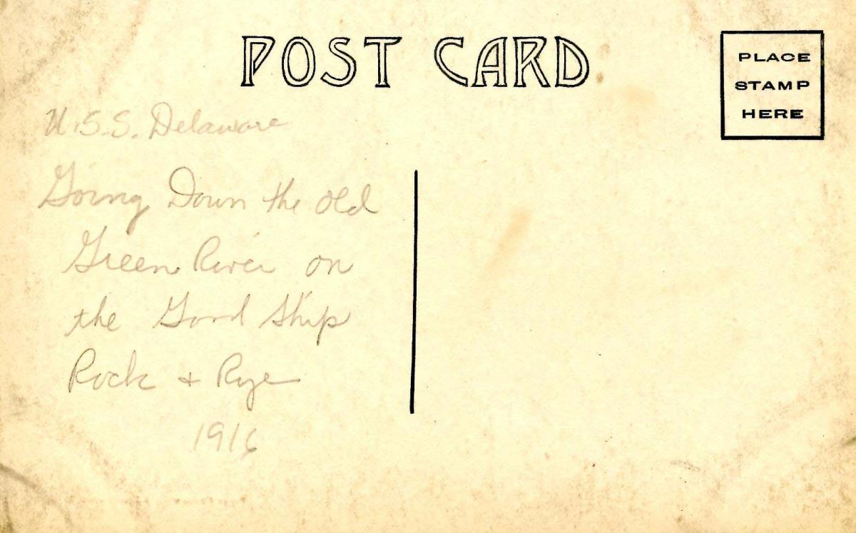 USS Delaware, 1916. Good Ship Rock & Rye - RPPC