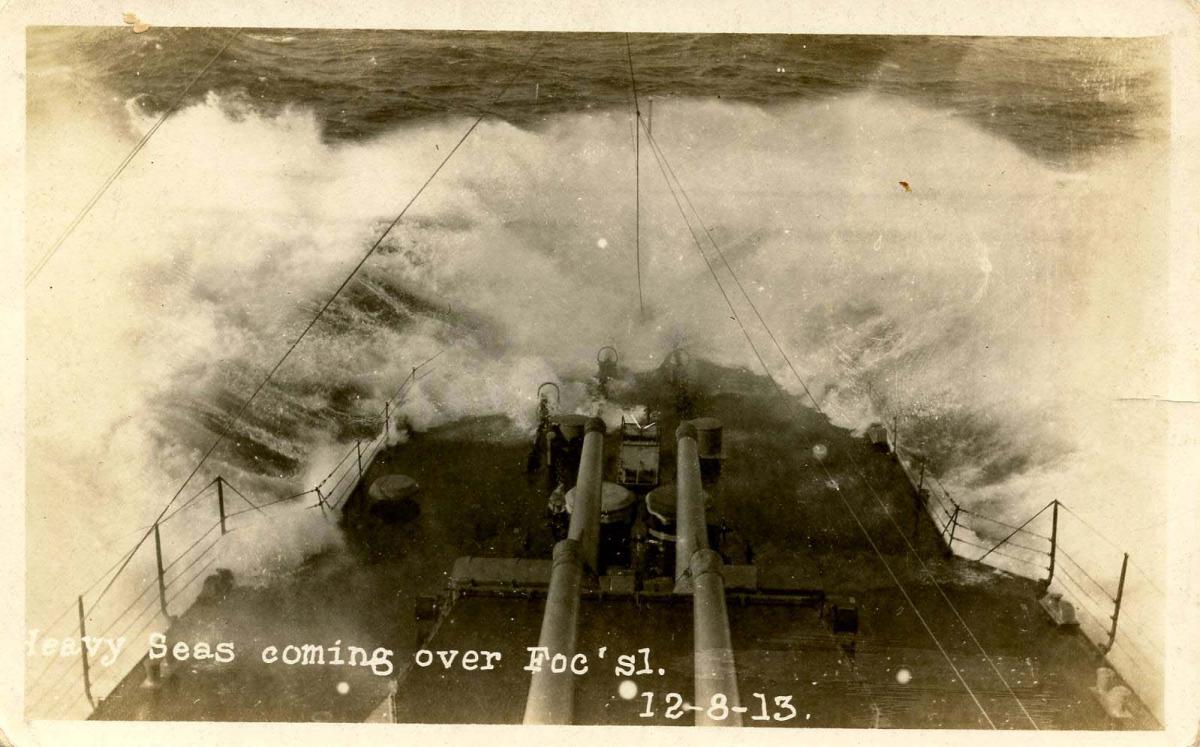 USS Florida. Heavy Seas - December 8, 1913. *RPPC