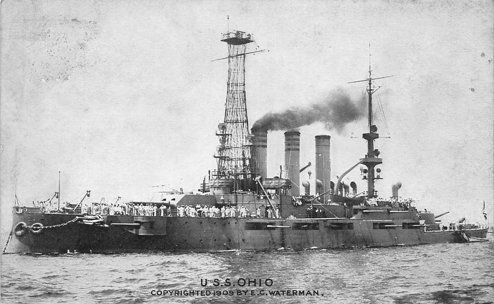 U.S.S. Ohio, United States Navy, 1909 postcard, unused, very fine. See scans for exact condition. Free shipping to any U.S. address.