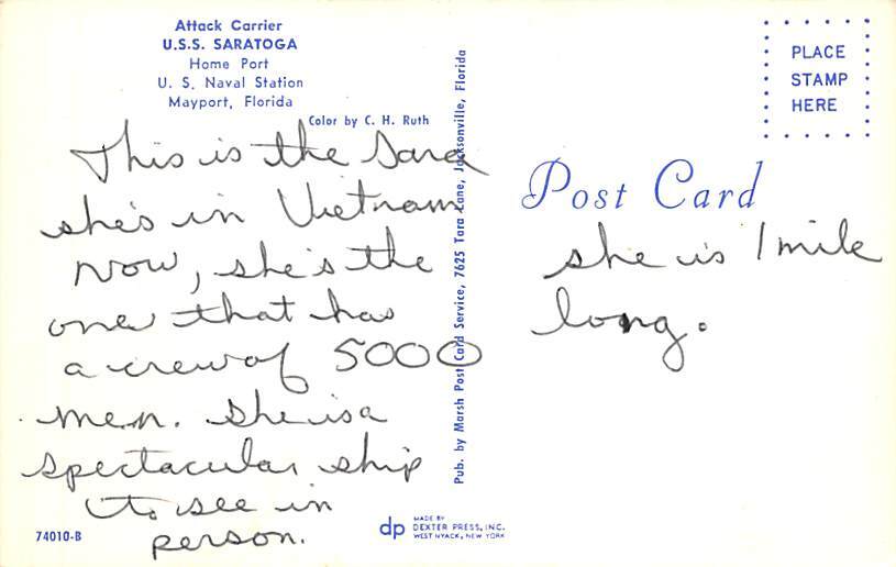 U.SS Saratoga Aircraft Carrier Military Battleships Ship Postcard ,