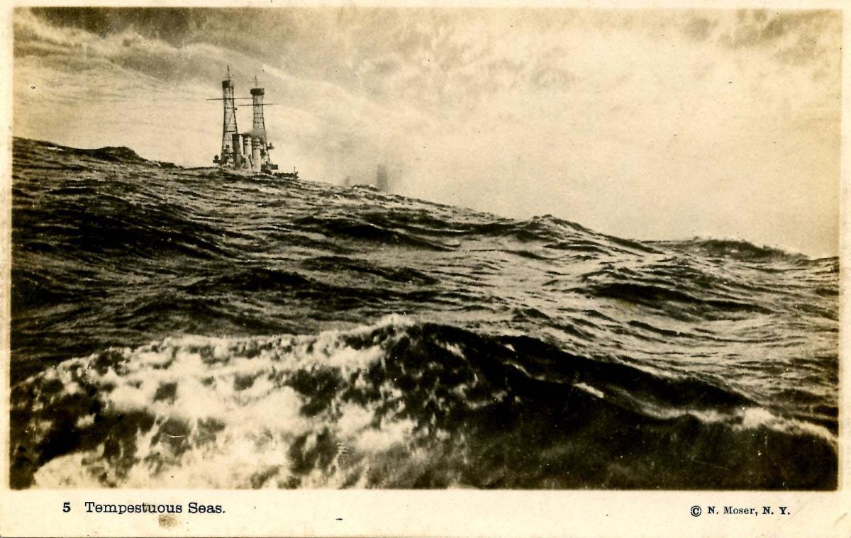 USS Vermont, 1916, Tempestuous Seas - RPPCGrading of Postcards