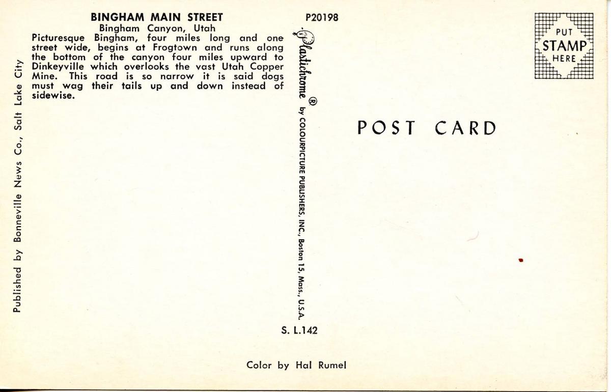 UT - Bingham, Main Street M, Un, Db, C Grading of Postcards MINT (M): Perfect condition, no apparent blemishes, flaws, postally unused, may have some writing on back. NEAR MINT (NM): Like new, image is uncompromis ... Read More