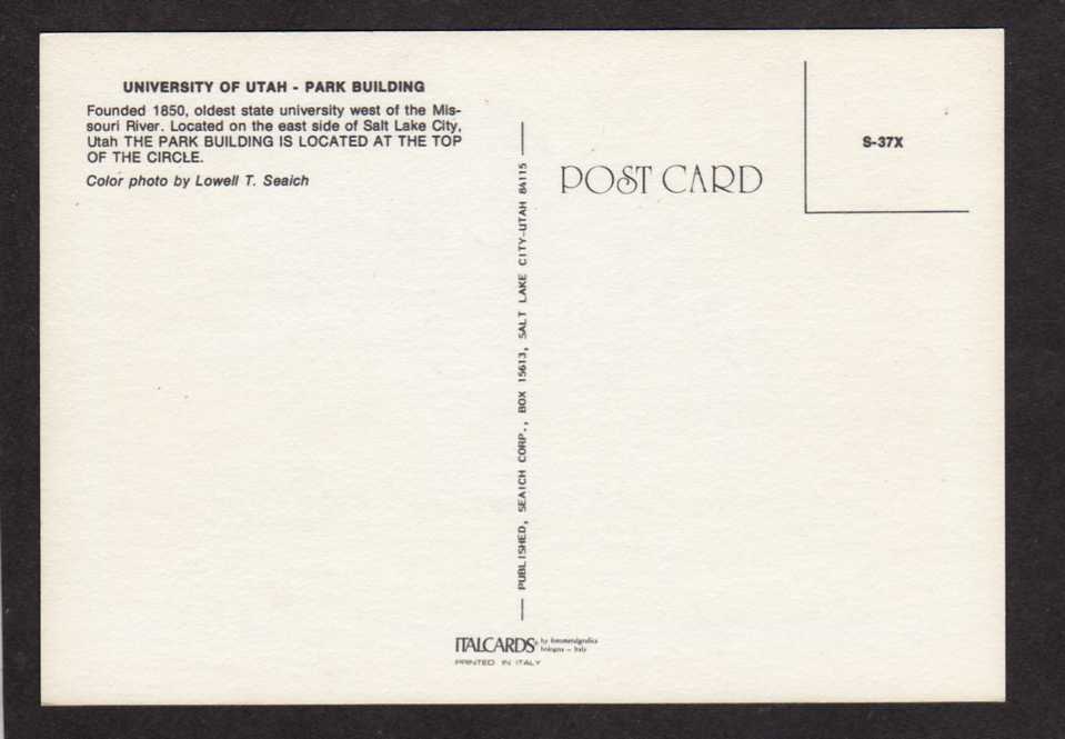 UT University of Utah Salt Lake City Park Bldg Flag Postcard