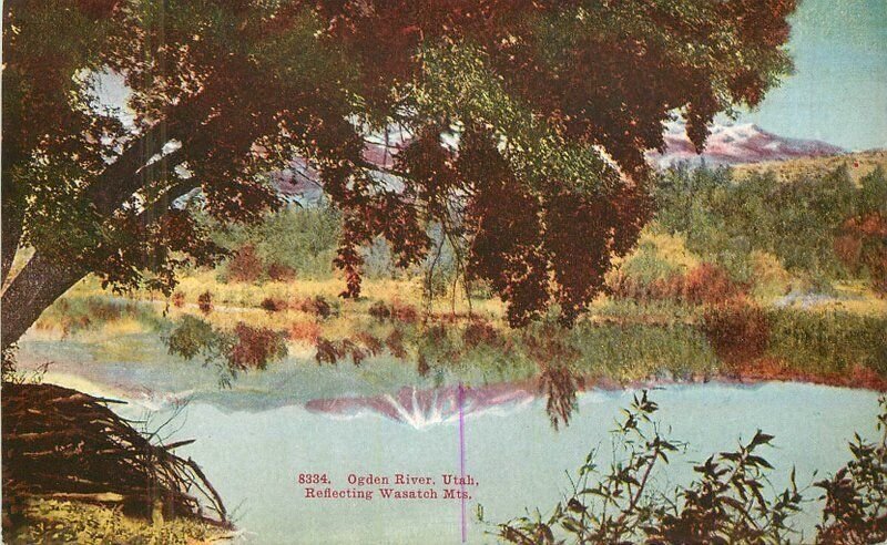 Utah Ogden River reflecting Wasatch Mountains C-1910 Postcard 22-8494