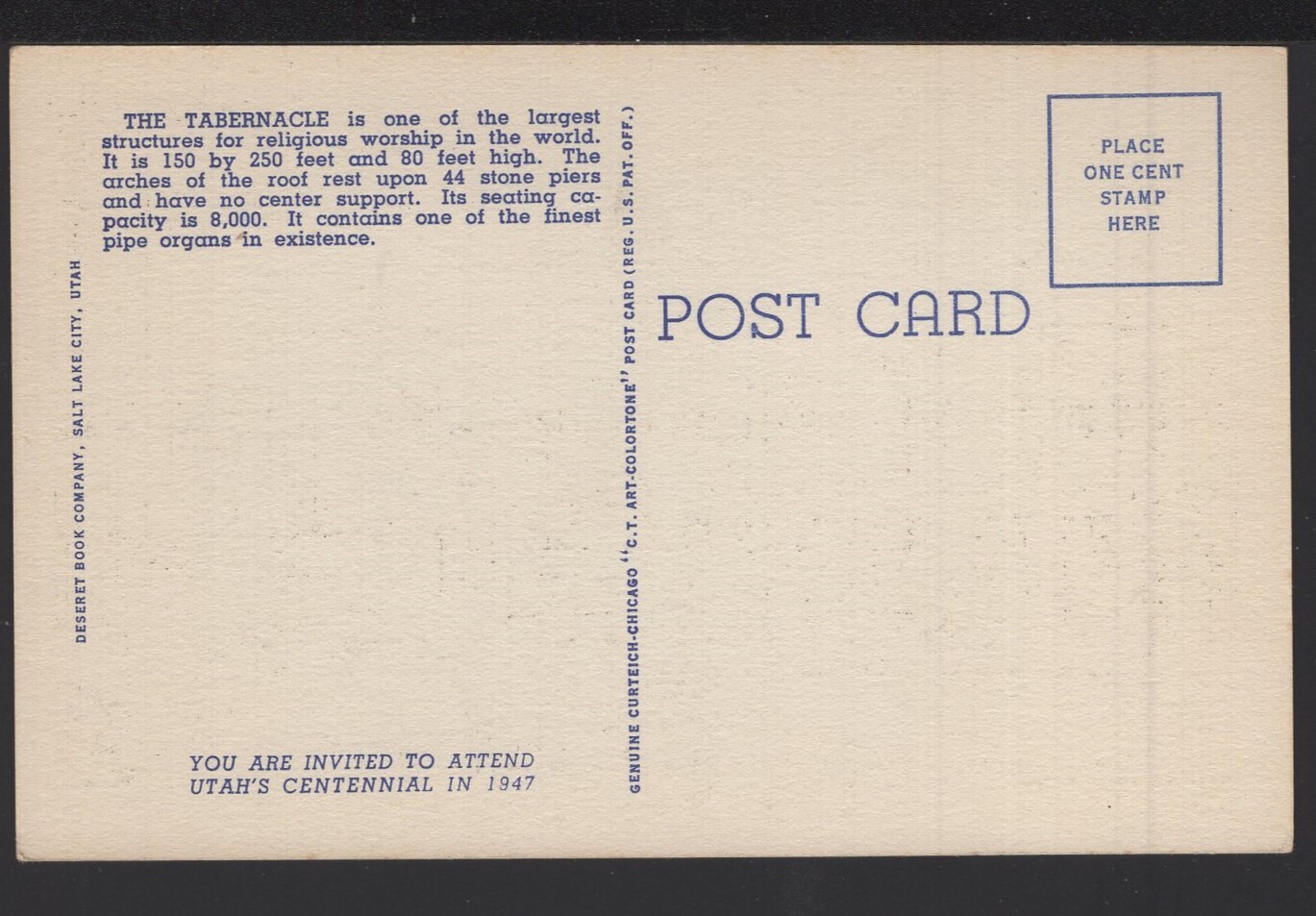 Utah SALT LAKE CITY Great "Mormon" Tabernacle ~ Linen