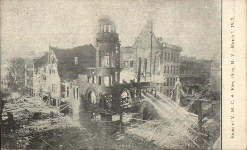 Utica NY YMCA Fire Ruins 1907 Postcard