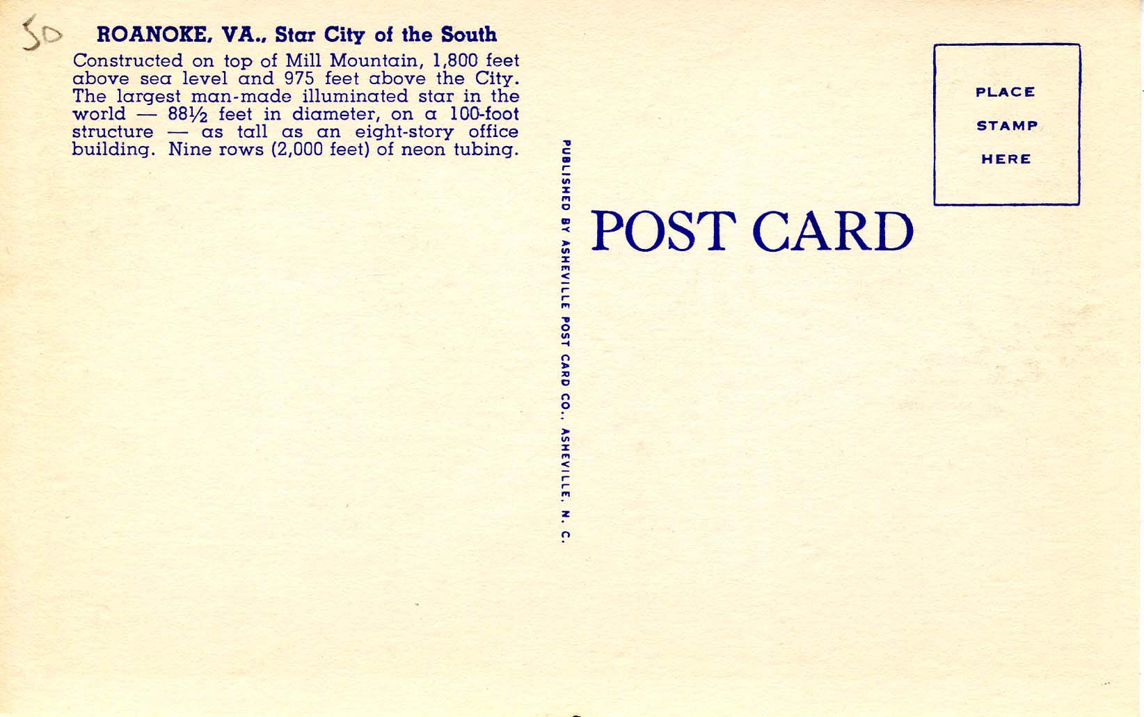 VA - Roanoke. Electric Star on Mill Mountain at Night