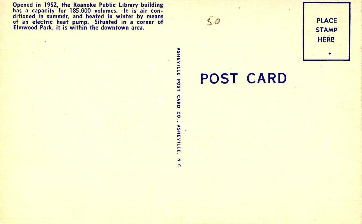 VA - Roanoke. Roanoke Public Library at Night Grading of Postcards MINT (M): Perfect condition, no apparent blemishes, flaws, postally unused, may have some writing on back. NEAR MINT (NM): Like new, image is unco ... Read More