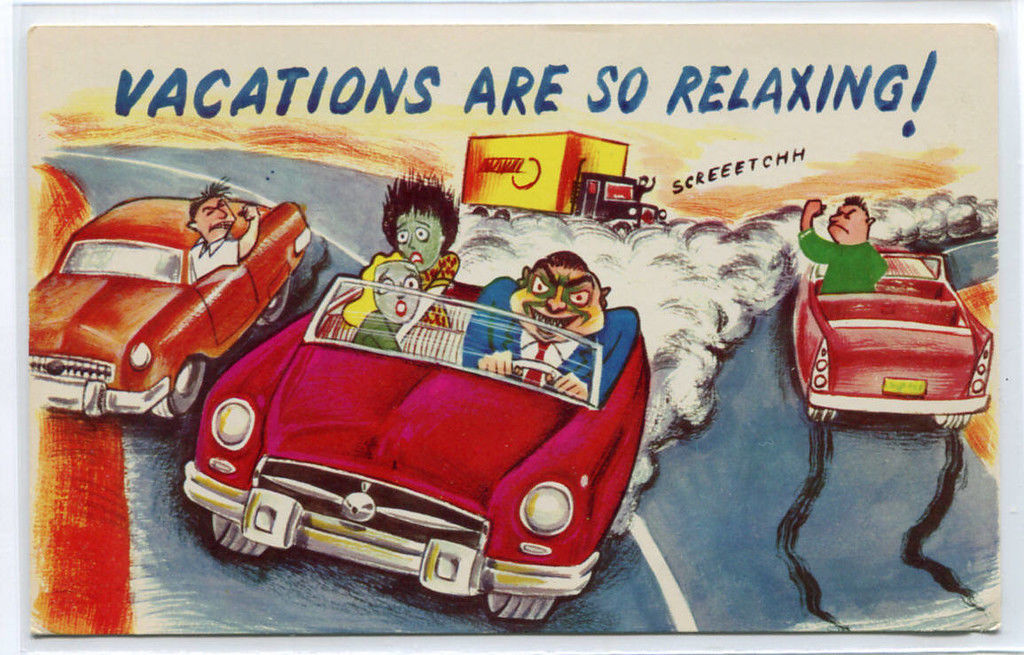 Vacations Are So Relaxing Car Highway Roadside America Comic postcard