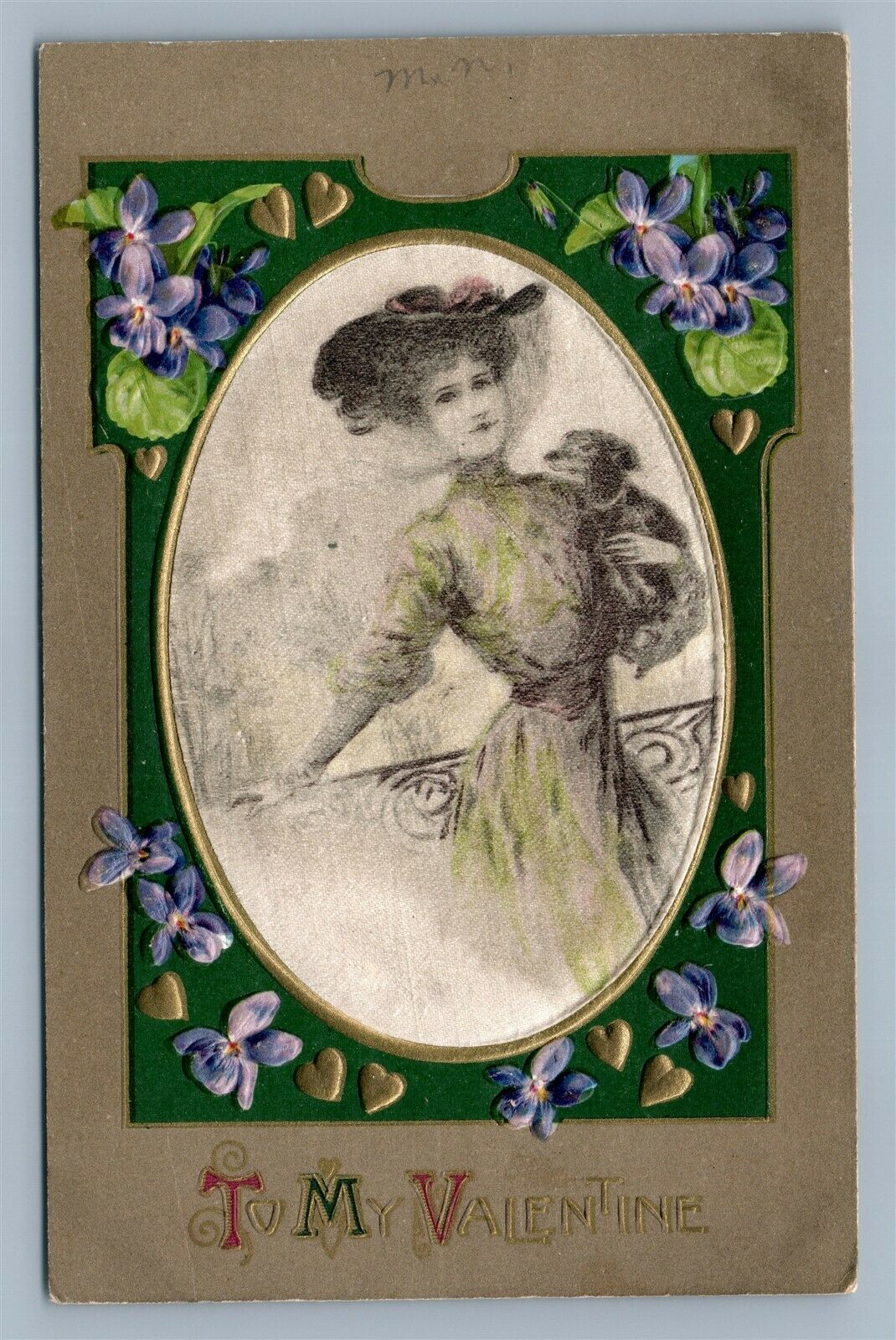 VALENTINE 1910 ANTIQUE EMBOSSED POSTCARD on SILK
