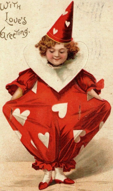 Valentine Clown Clapsaddle Unsigned Postcard Hearts Girl Lightly Embossed