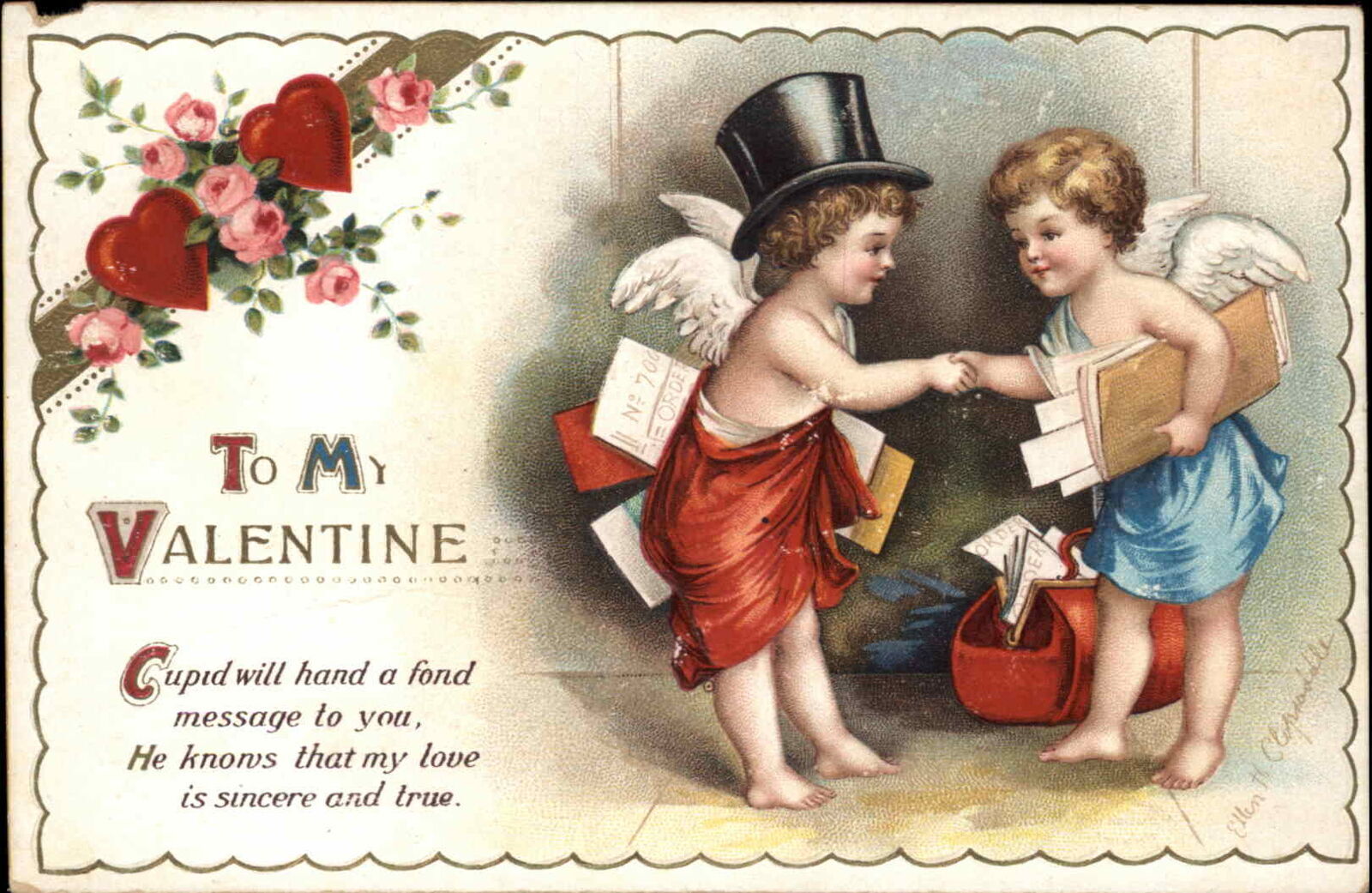 Valentine Cupid Children Boy in Top Hat Ellen Clapsaddle c1910 Postcard
