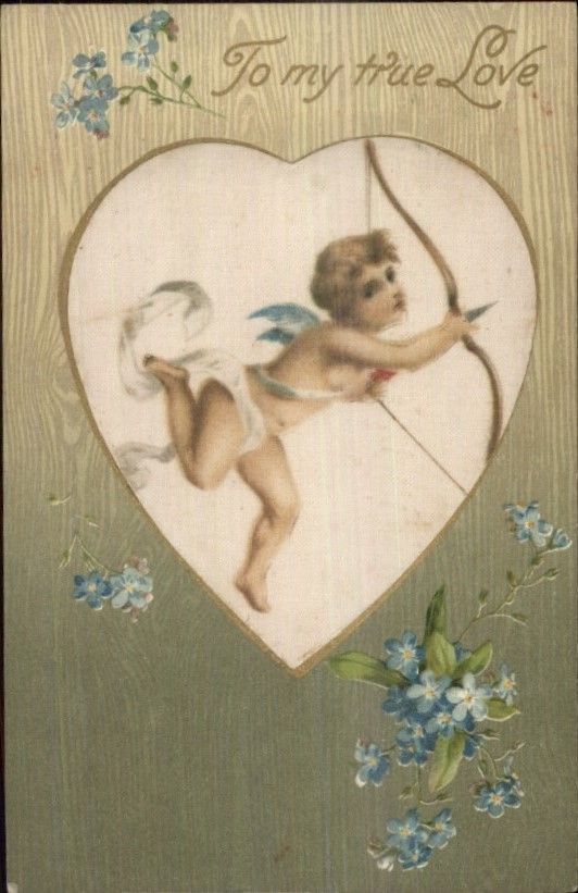 Valentine SILK WINSCH Cherub Bow & Arrow c1910 Postcard