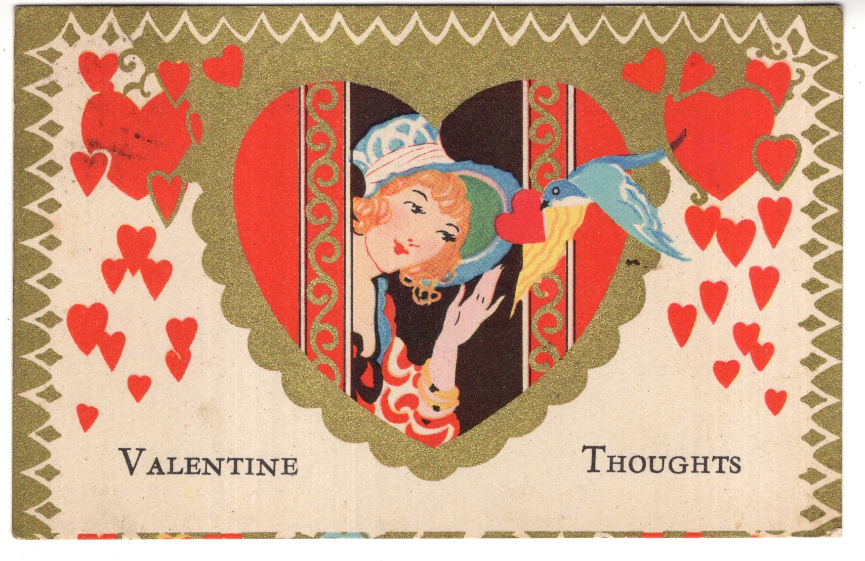 Valentine Thoughts, Bluebird, Valentine, Used 1933 Nova Scotia Split Ring Cancel