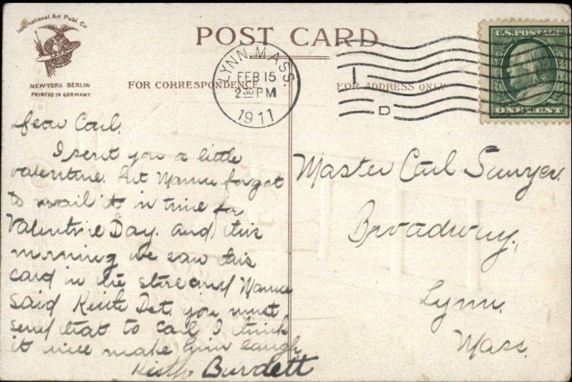 Valentine - Unsigned Clapsaddle - Boy Climbing Fence c1910 Postcard