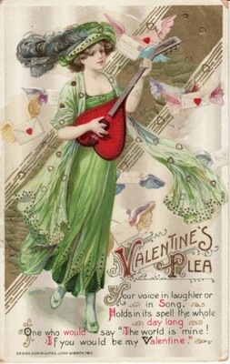 VALENTINE unsigned SCHMUCKER, Pretty Lady with Heart Lut...