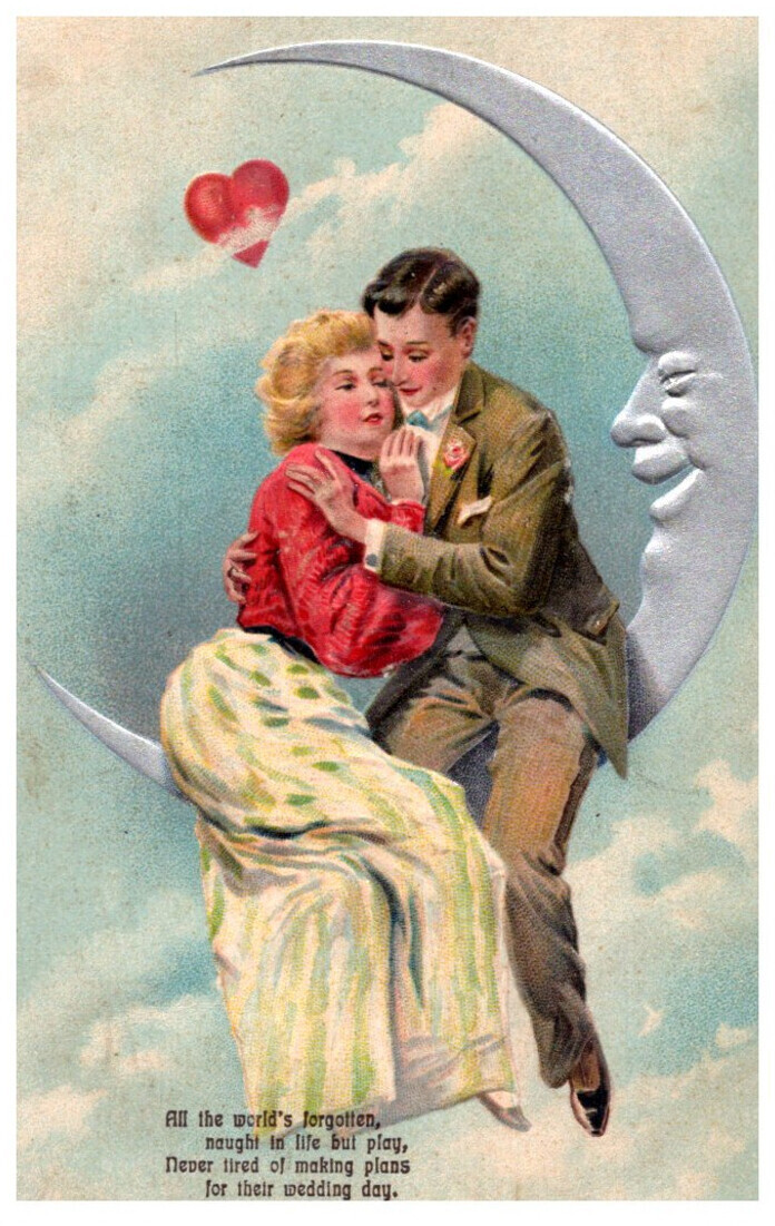 Valentine's Day Couple sitting on Moon