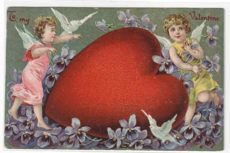 Valentine's Day Heart Cupids Doves 1910 postcard