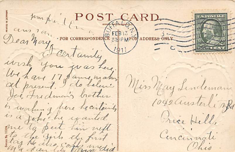Valentines Day Postcard PU 1911,