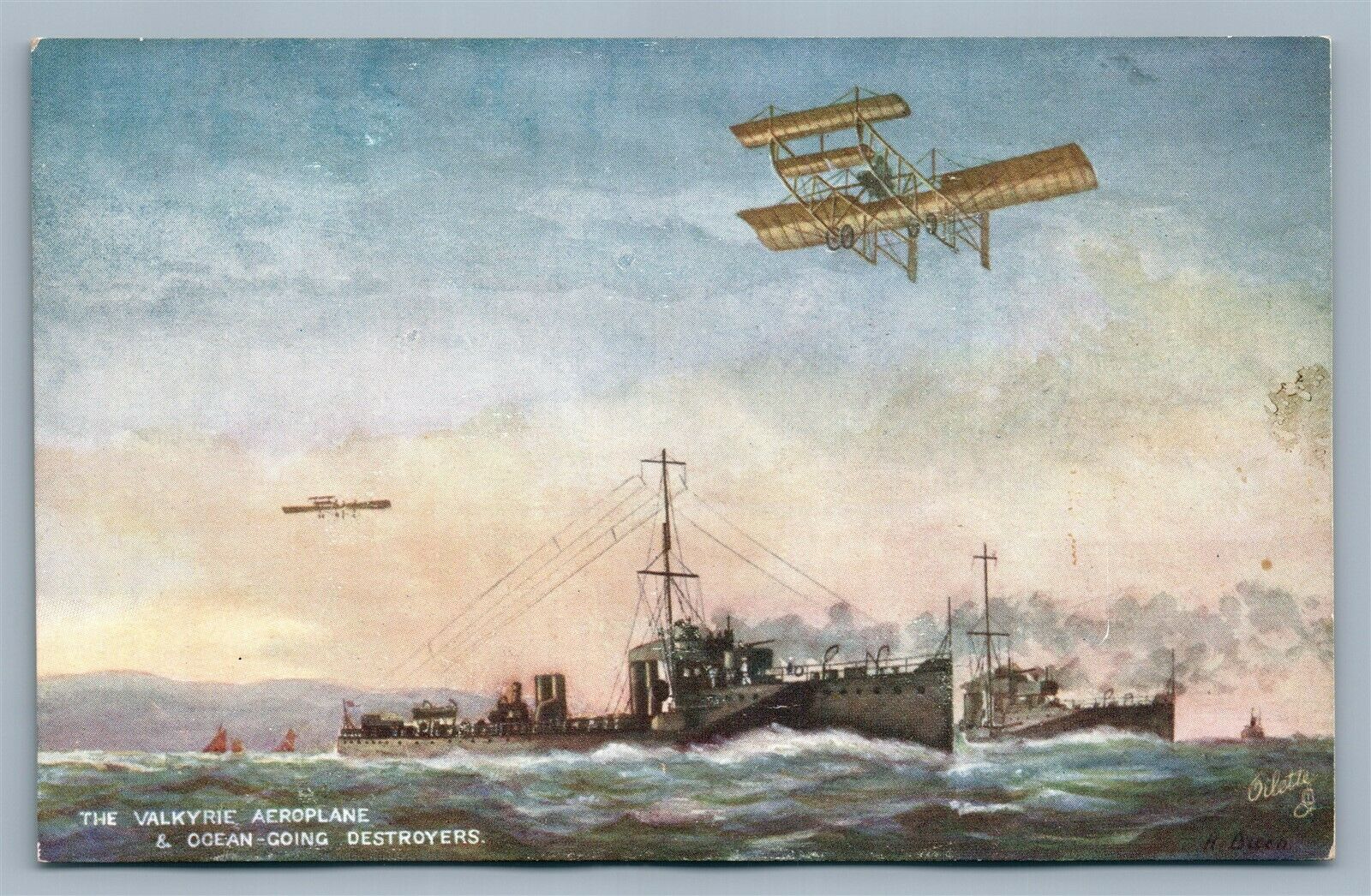 VALKYRIE AEROPLANE & OCEAN GOING DESTROYERS ANTIQUE POSTCARD