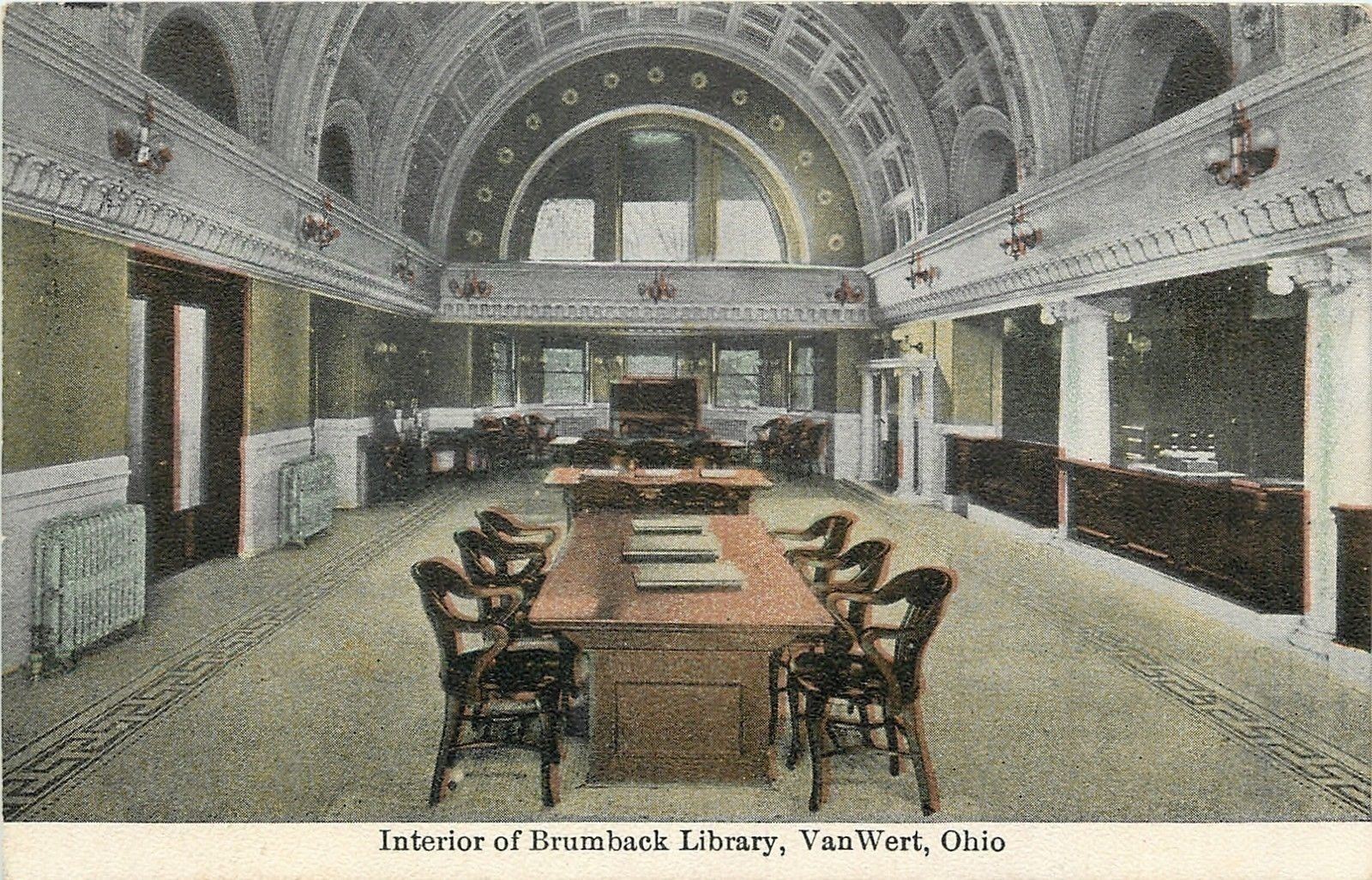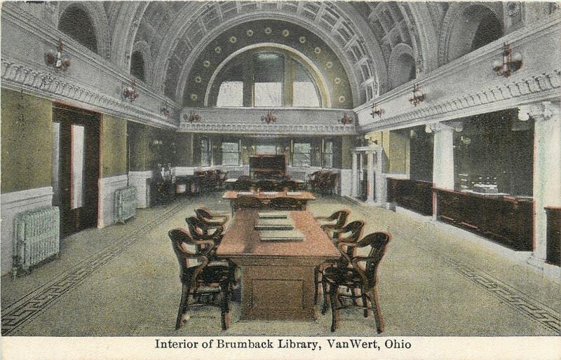 Van Wert Ohio~Interior of Brumback Library~1909 Postcard