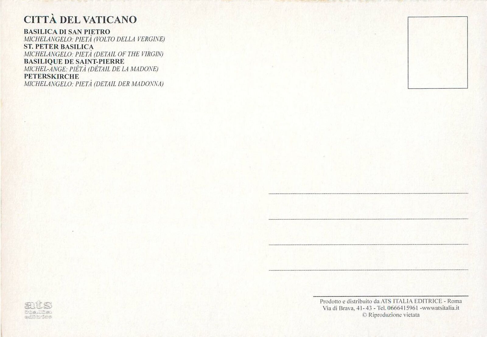 Vatican st peter basilica michelangelo pieta postcard