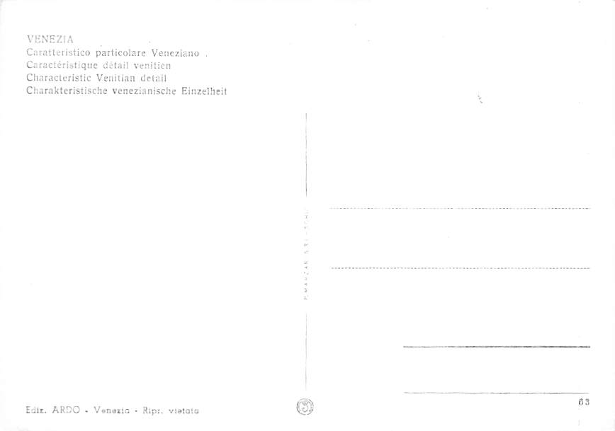 Venezia - Characteristic Venitian Detail Grade: 1 Category: Continental Size Postcard, Approx 4 in x 6 in (10 cm x 15.25 cm) Product Size: Continental size: 4X6 inches (10.5 cm x 15 cm) Grading Scale: Grade 1 ... Read More