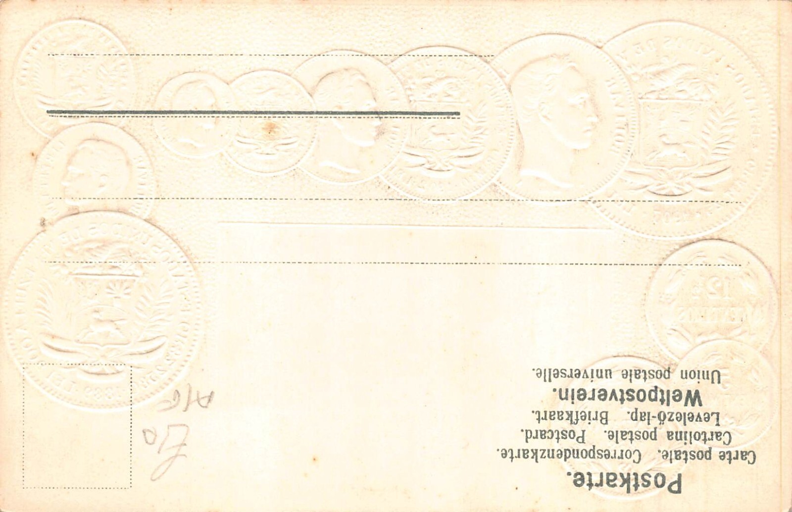 Venezuela Table Exchange Flag Coins embossed coinage postcard C315