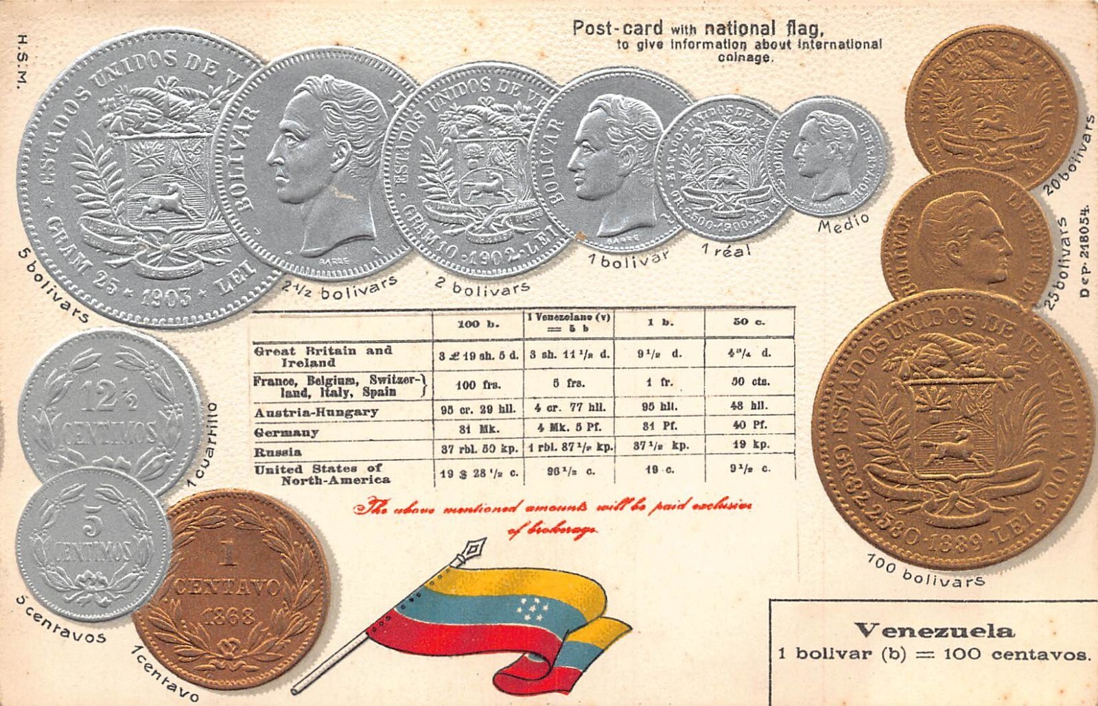 Venezuela Table Exchange Flag Coins embossed coinage postcard C315 This item is listed via xdm.it software