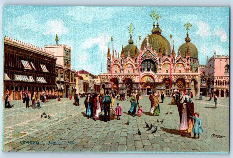 Venice Veneto Italy Postcard Mass Gathering in front of Church of S Marco c1910