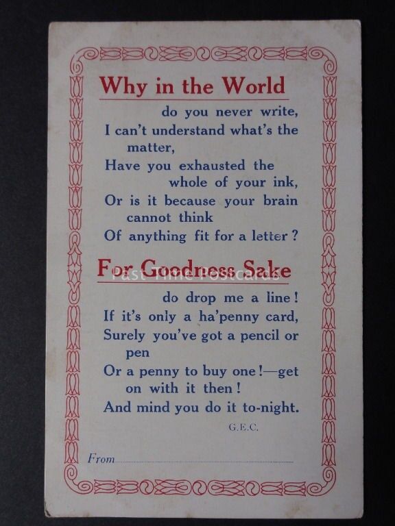 Verse & Poem WHY IN THE WORLD DO YOU NEVER WRITE.... Old Postcard