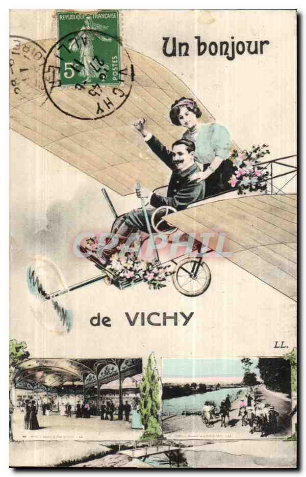 Vichy - A Hello Vichy - Avion - Airplane Old Postcard