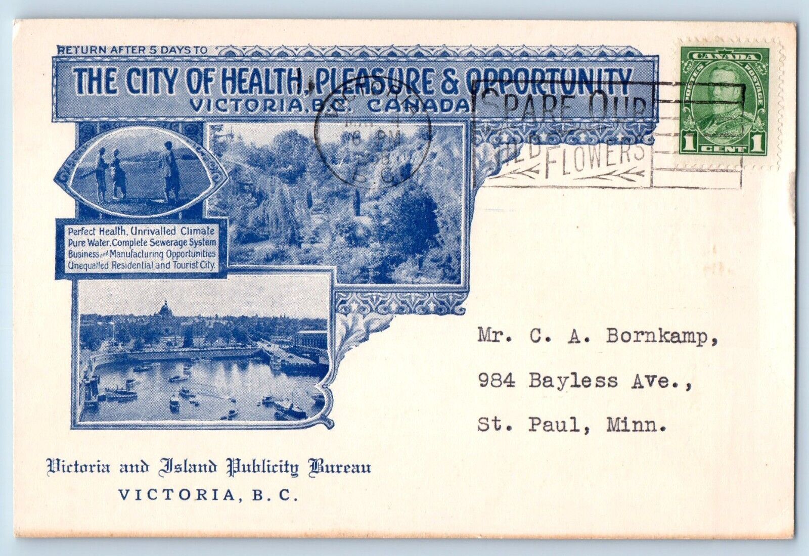 Victoria BC Canada Postcard The Victoria And Island Publicity Bureau 1956 Posted