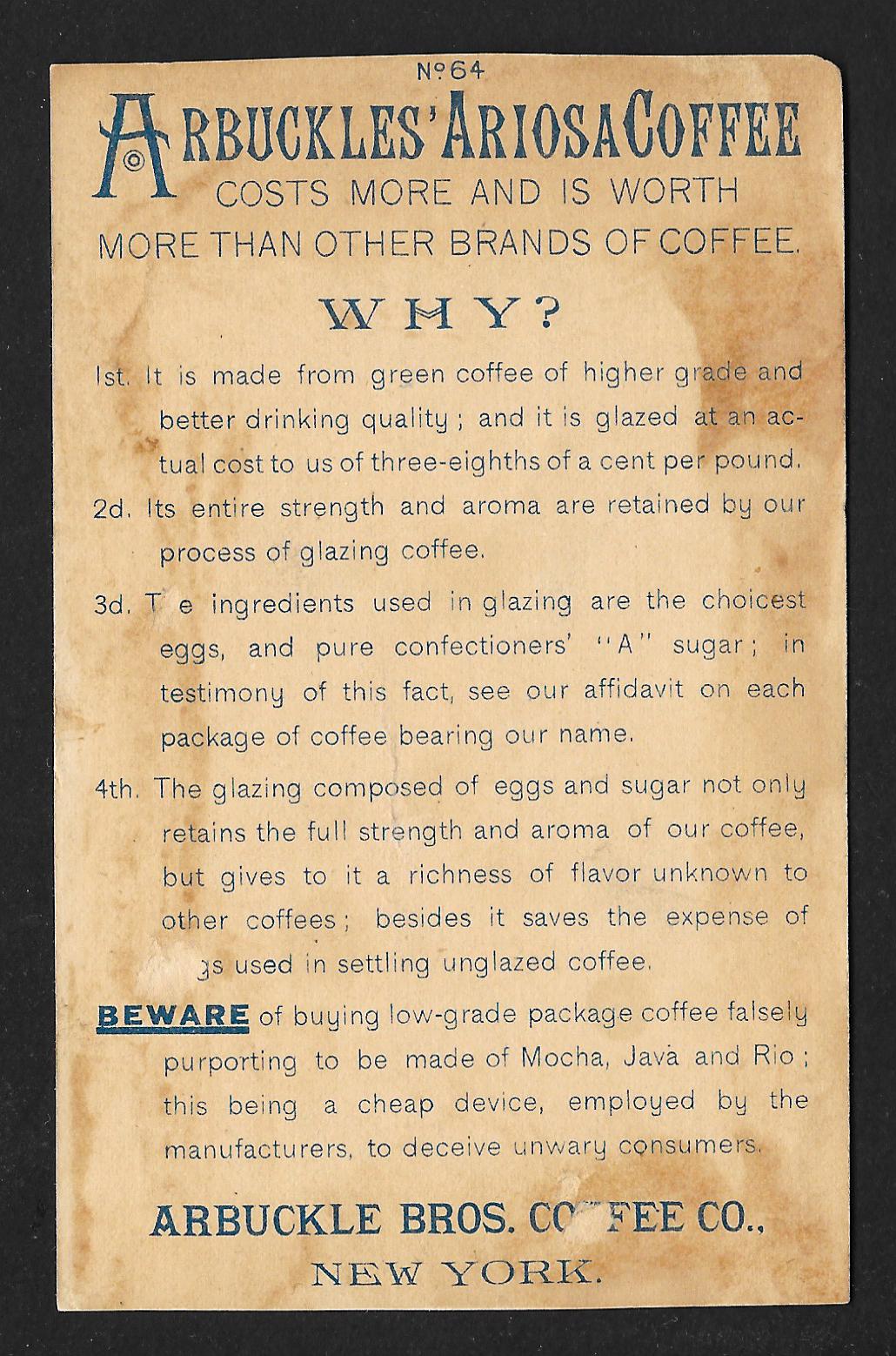 VICTORIAN TRADE CARD Arbuckles Coffee Old Black Man & Woman 'It Almost Broke Her