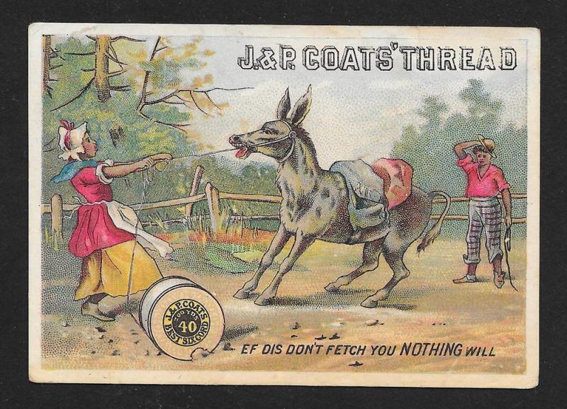 VICTORIAN TRADE CARD Coats' Thread Black People Pulling Mule