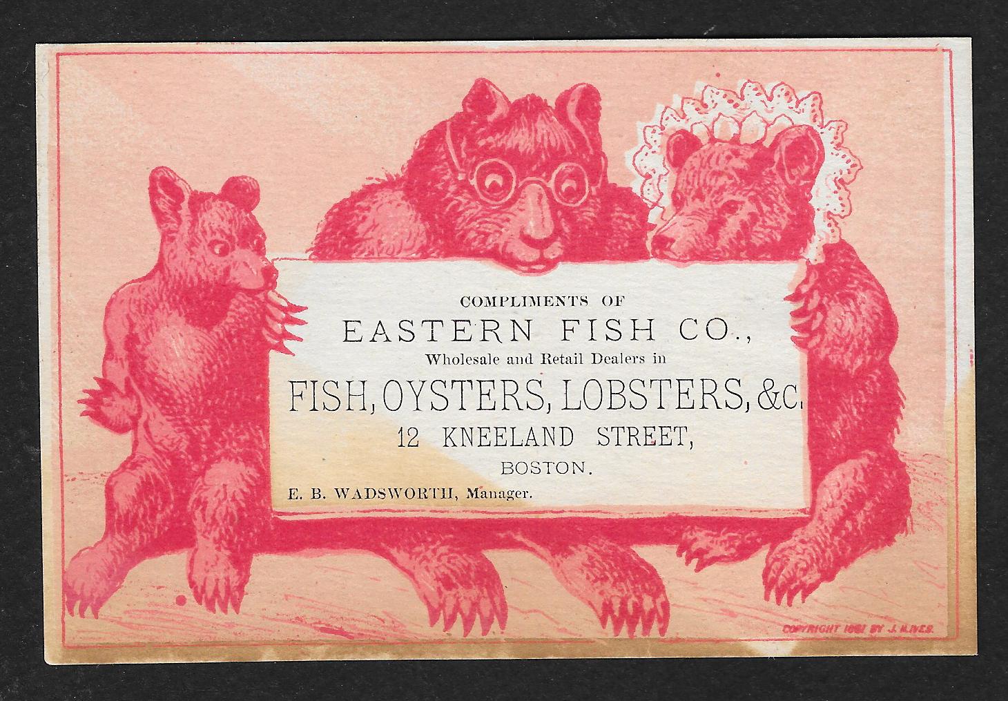 VICTORIAN TRADE CARD Eastern Fish Co Bear People