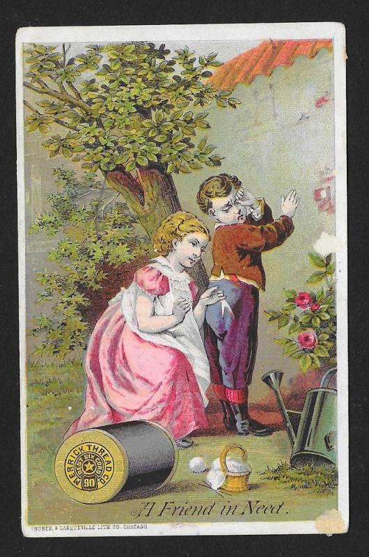 VICTORIAN TRADE CARD Merrick Thread Kids Playing