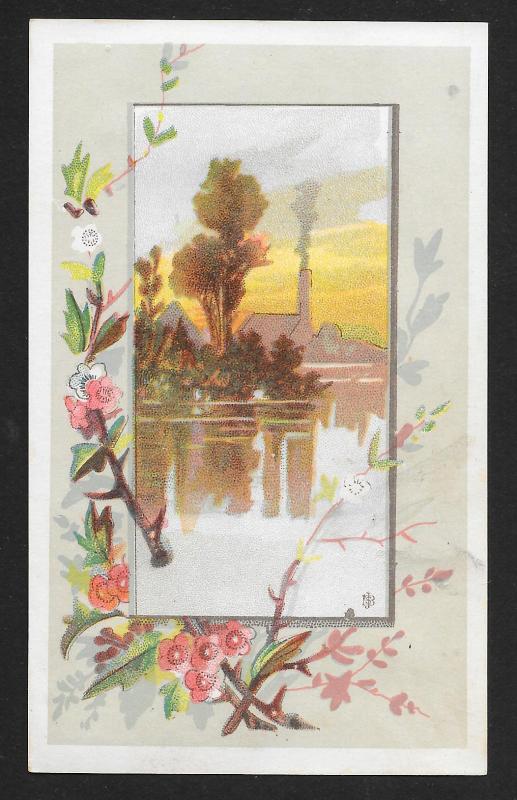 VICTORIAN TRADE CARDS (4 diff) Stock Cards Water View & Boat Edged with Flowers