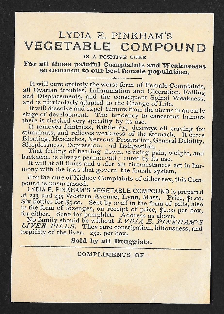 VICTORIAN TRADE CARDS (6) Lydia Pinkham's Vegetable Compound