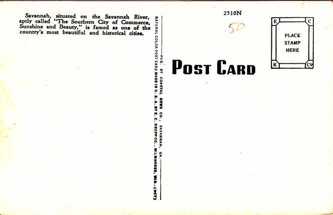Victory Drive - Savannah, Georgia. Standard sized linen post card. Printed by the E. C. Kropp Co. of Milwaukee. Very good condition.