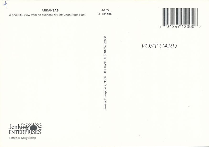 View from Overlook at Petit Jean State Park, Arkansas. Continental sized chrome card. Excellent condition.