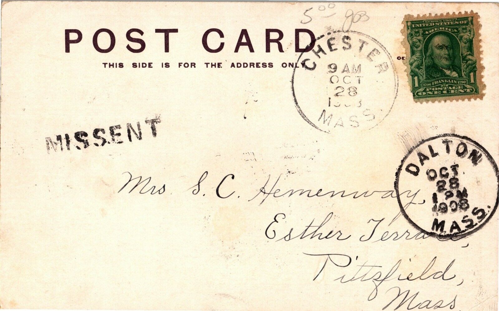 View Overlooking Lenox Road, Chester MA Undivided Back c1908 Vtg Postcard T22