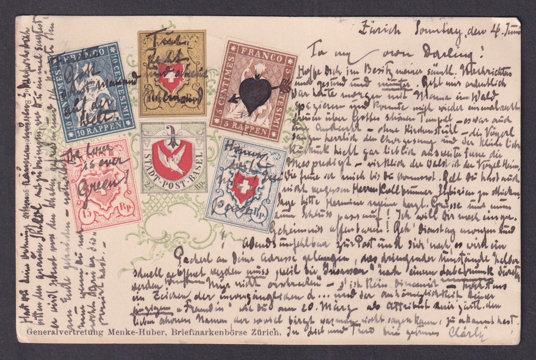 Vinatge postcard SWIZERLAND, 1899 First stamps
