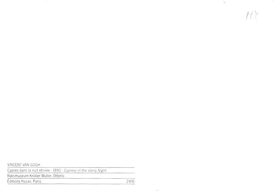 Vincent Van Gogh - Cyprss in the Starry Night Grade: 1 Category: Continental Size Postcard, Approx 4 in x 6 in (10 cm x 15.25 cm) Product Size: Continental size: 4X6 inches (10.5 cm x 15 cm) Grading Scale: Gra ... Read More