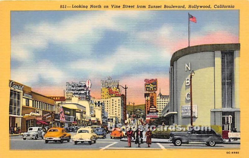Vine Street - Hollywood, California CA Postcard