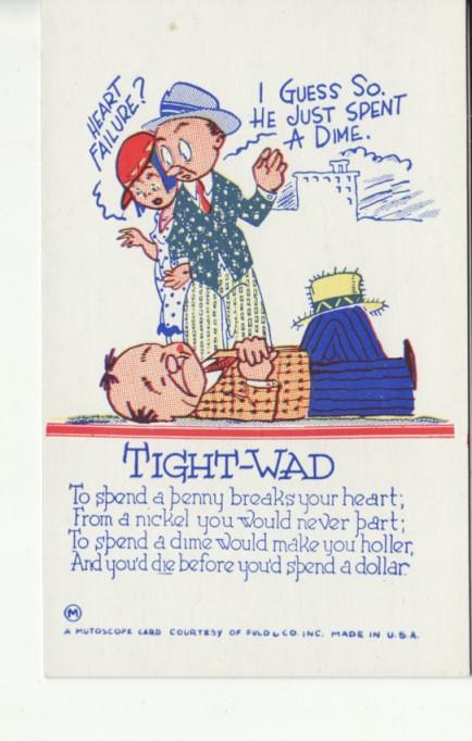 VINEGAR VALENTINE TIGHT-WAD Mutoscope comic postcard