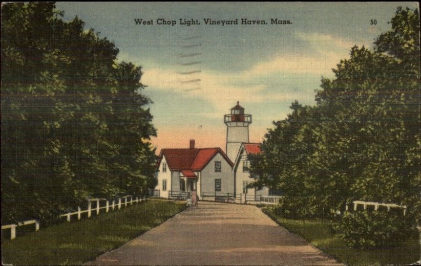 Vineyard Haven MA West Chop Lighthouse Linen Postcard #4