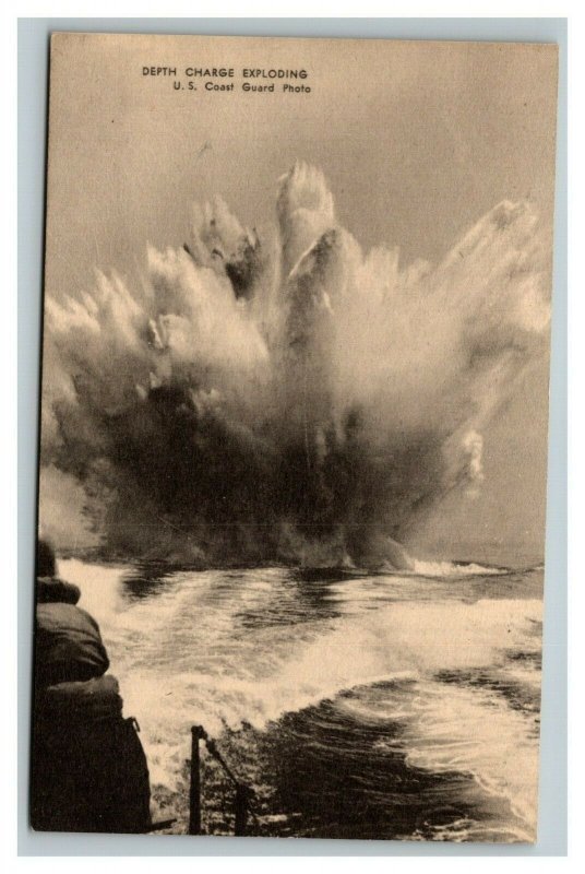 Vintage 1940's Military Postcard Depth Charge Exploding US Coast Guard