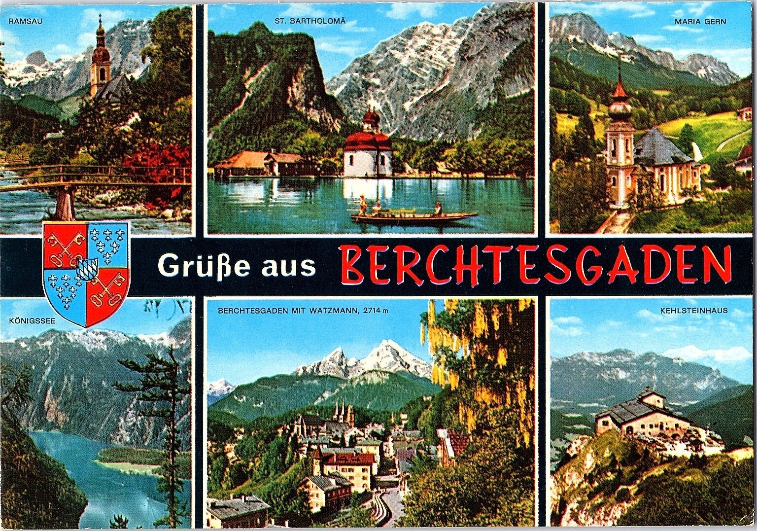 Condition: Pre-owned. With mild edgewear. Typical. This vintage postcard features a vibrant multi-view collage of iconic landmarks and landscapes from Berchtesgaden, a picturesque town in Bavaria, Germany. The col ... Read More